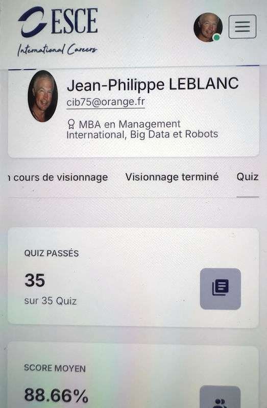 Ces informations ont été écrites et/ou rassemblées et sélectionnées par notre Président JP LEBLANC afin de apporter à nos clients adhérents une véritable plus-value pour améliorer la performance et l’attractivité de votre organisation (attestation de formation finalisée pour l’inscription au MBA pou validation de compétence acquise accréditée par l’ESCE en pièce jointe avec une moyenne générale de 18/20 aux quizz du programme du MBA en management international et nouvelles technologies)